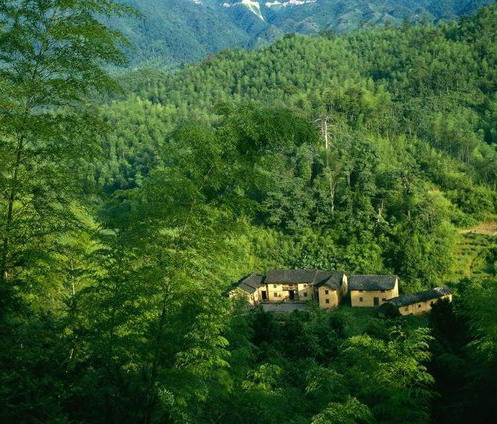 溪邊一叢竹挺拔高聳 天上白雲慵懶的散步
